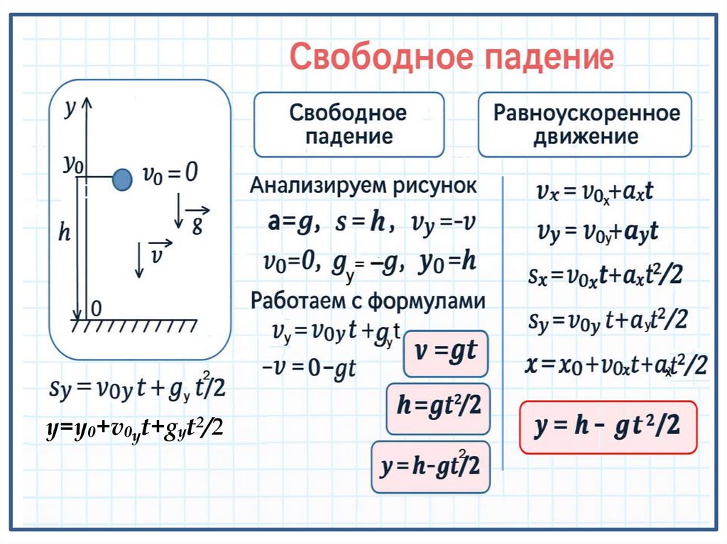 Графическое представлениесвободного падения
