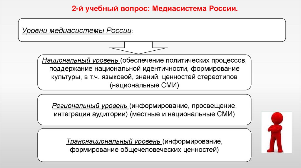 2-й учебный вопрос: Медиасистема России.Уровни медиасистемы России: