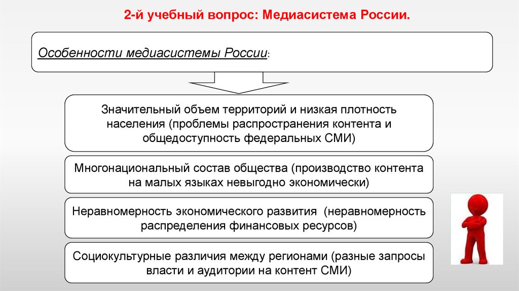2-й учебный вопрос: Медиасистема России.Особенности медиасистемы России: