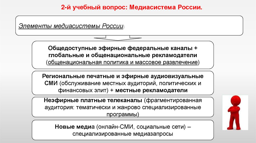 2-й учебный вопрос: Медиасистема России.Элементы медиасистемы России: