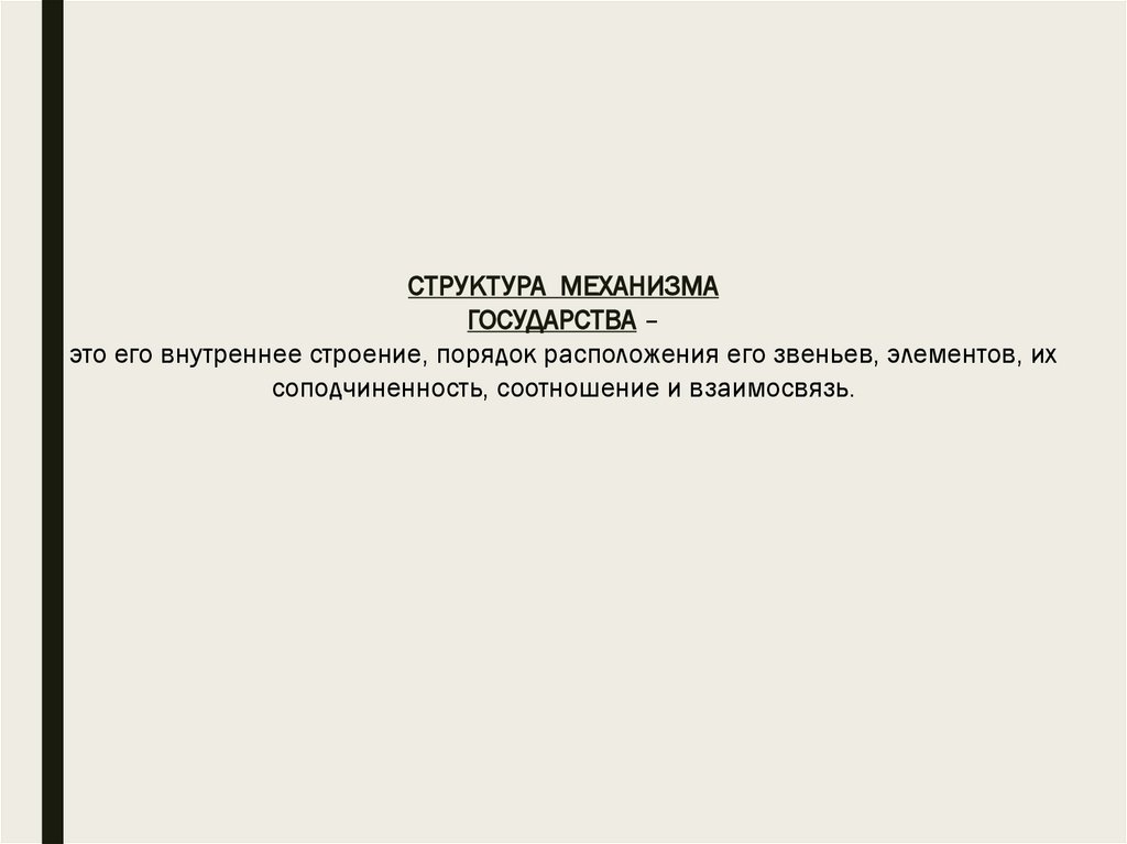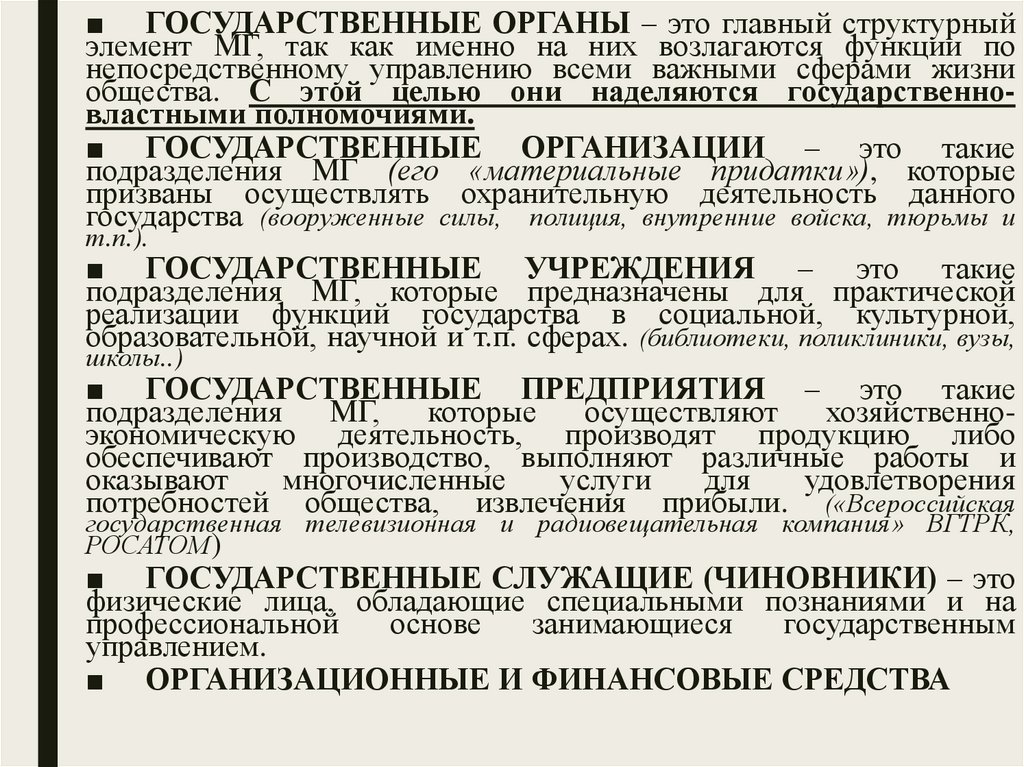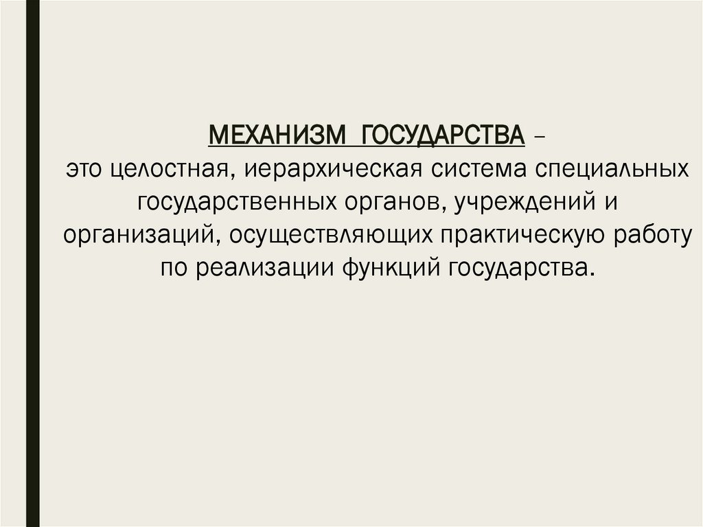 МЕХАНИЗМ ГОСУДАРСТВА –это целостная, иерархическая система специальных