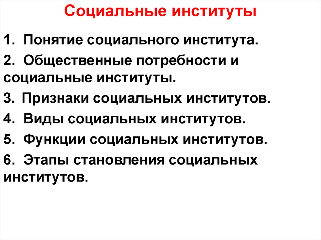 • Удовлетворение социальных потребностей— этоосновная функция каждого института.