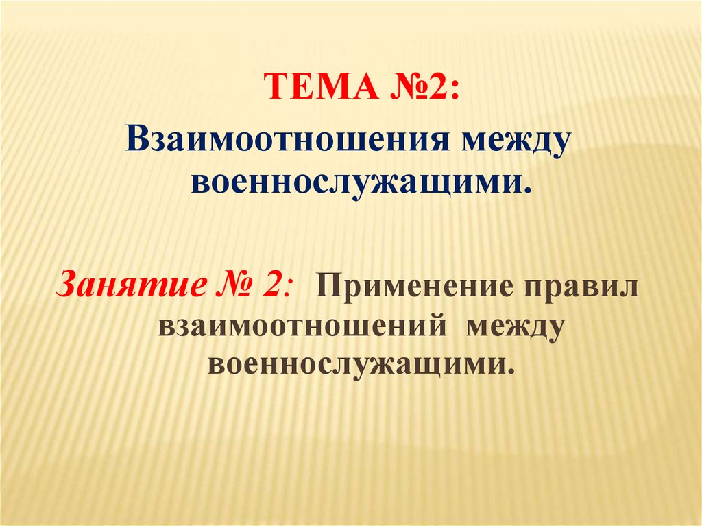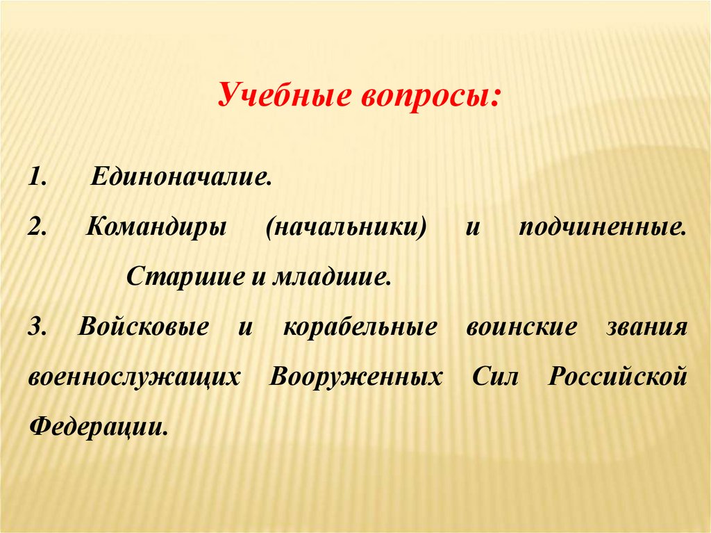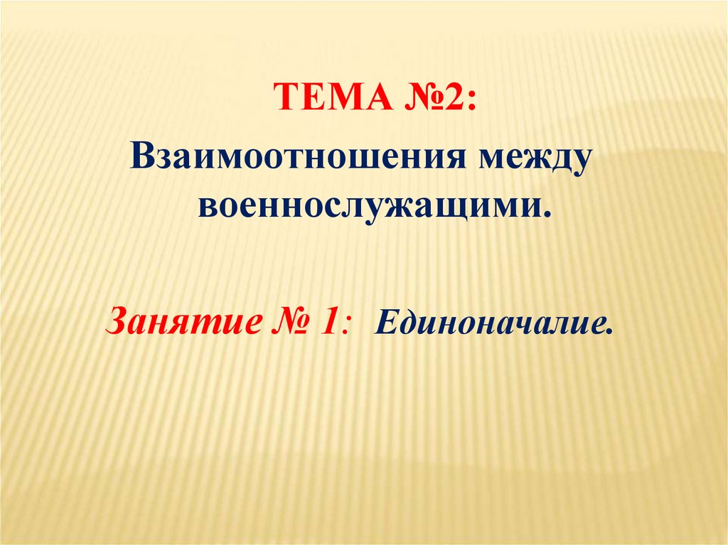 Взаимоотношения между военнослужащими. Занятие № 1: Единоначалие