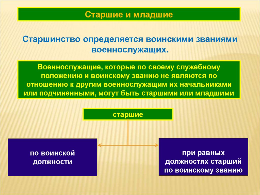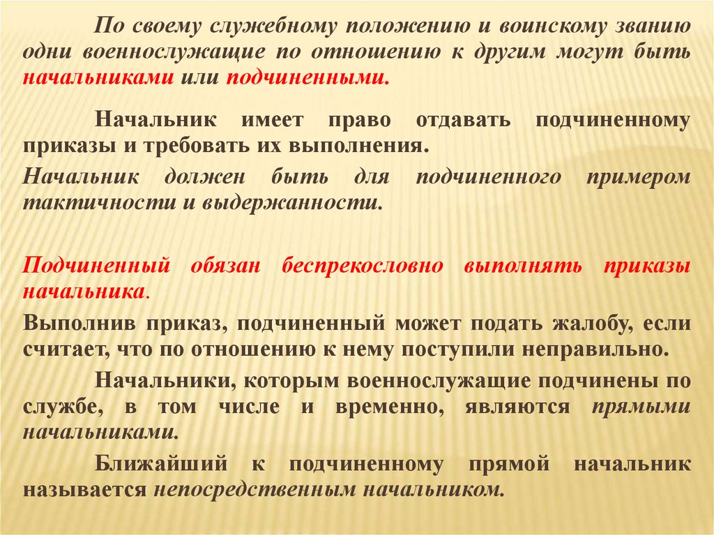 По своему служебному положению и воинскому званиюодни военнослужащие по отношению к другим могут быть