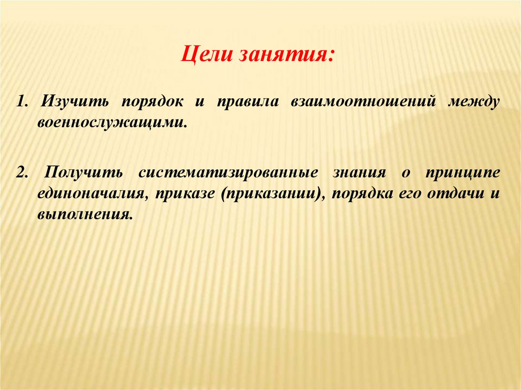 Цели занятия:1. Изучить порядок и правила взаимоотношений между