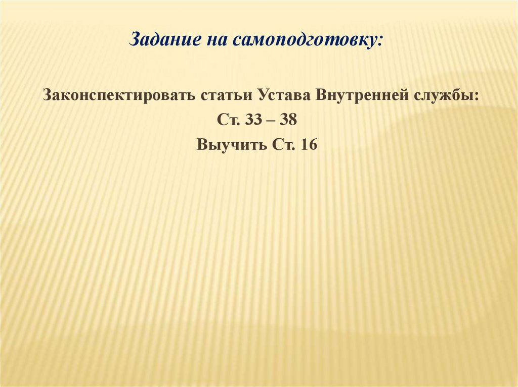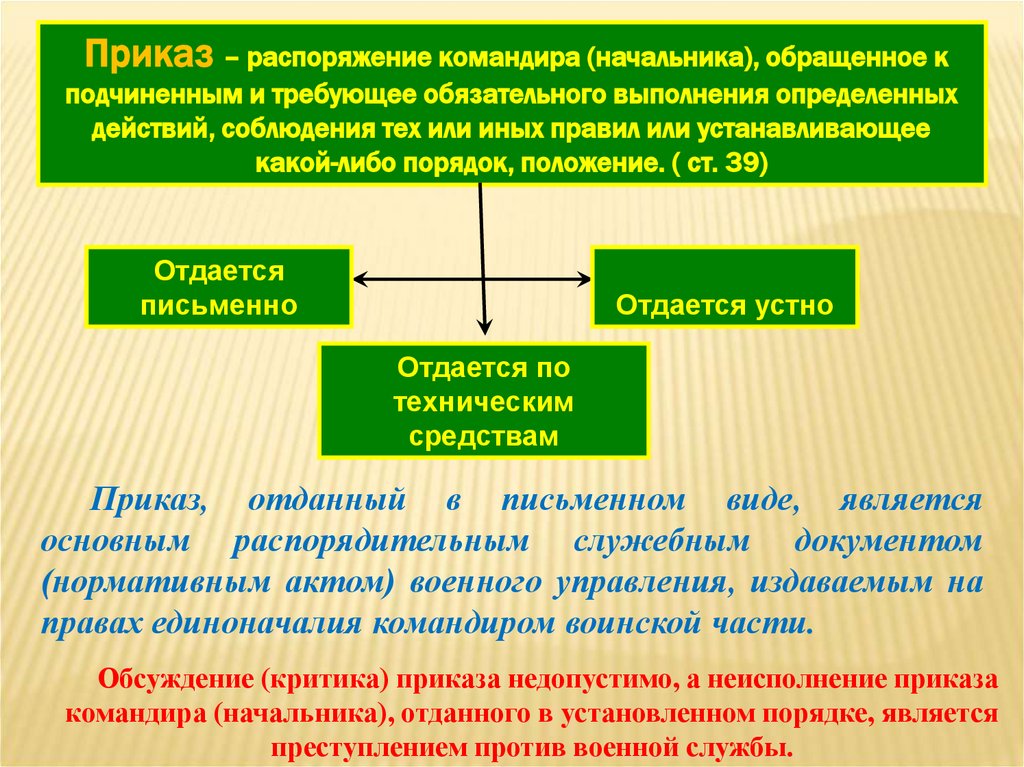 58. Задание на самоподготовку: Устав Внутренней службы ВС РФ: ст. 39 – 74 - Приказ (приказание), порядок его отдачи и выполнения. -