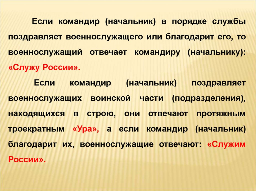 Если командир (начальник) в порядке службыпоздравляет военнослужащего или благодарит его, то