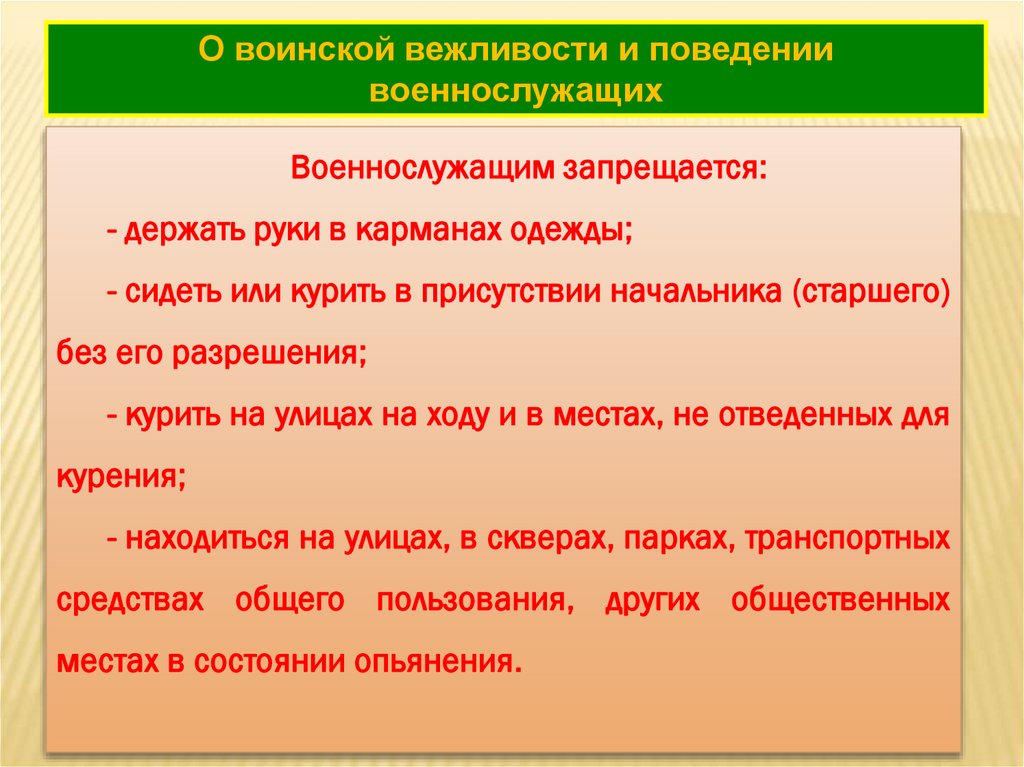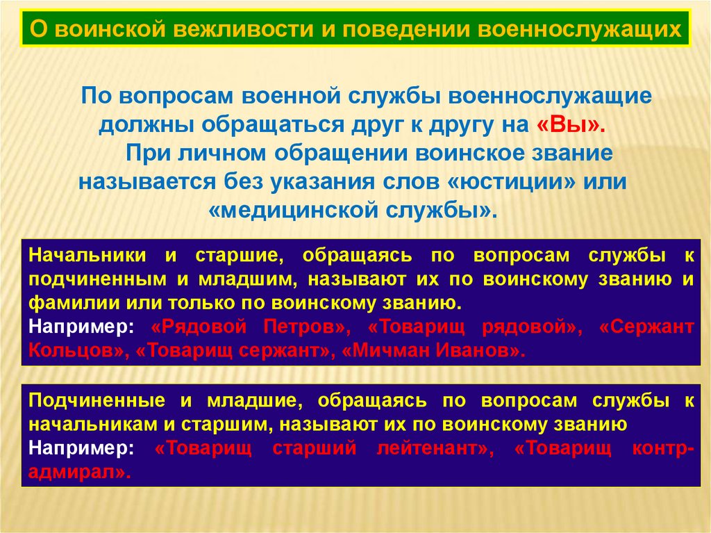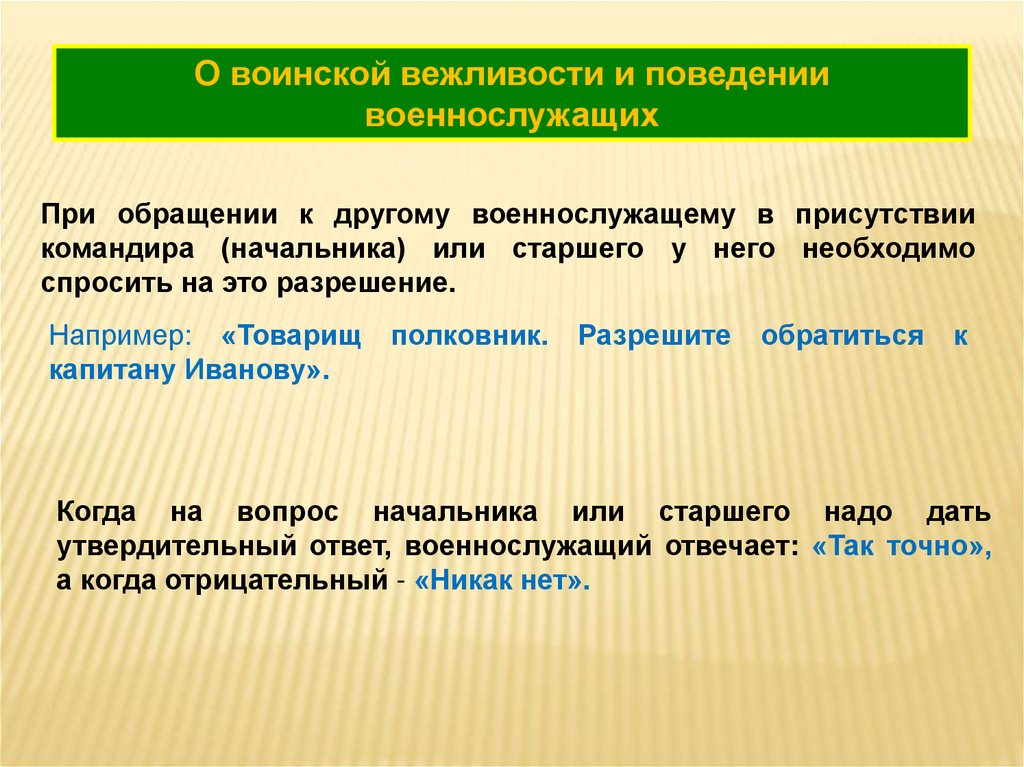 О воинской вежливости и поведении военнослужащихПо вопросам военной службы военнослужащие