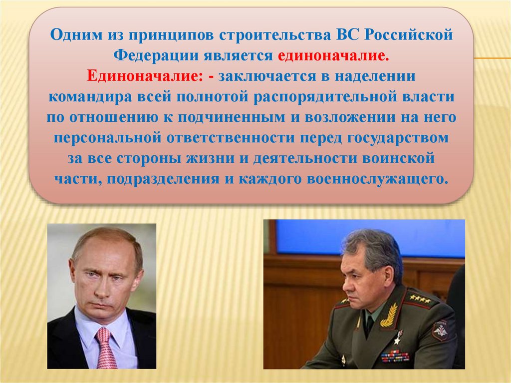Одним из принципов строительства ВС РоссийскойФедерации является единоначалие.