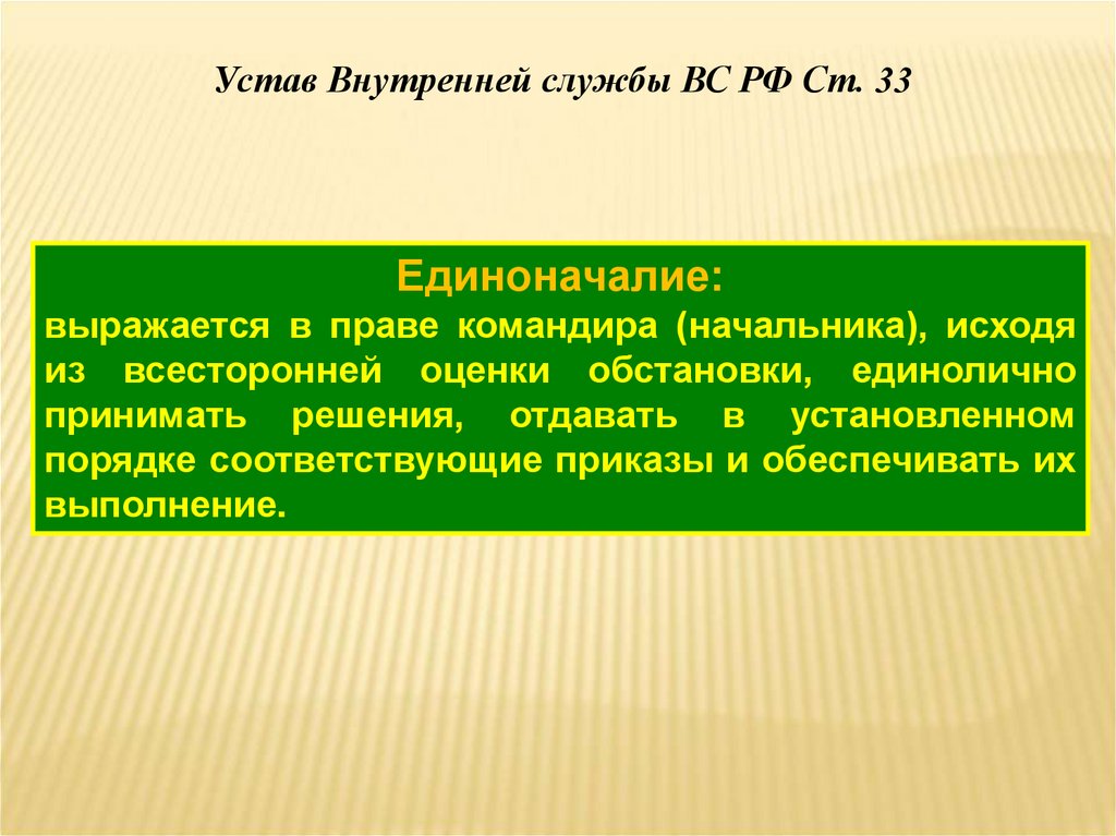 Устав Внутренней службы ВС РФ Ст. 33Единоначалие: