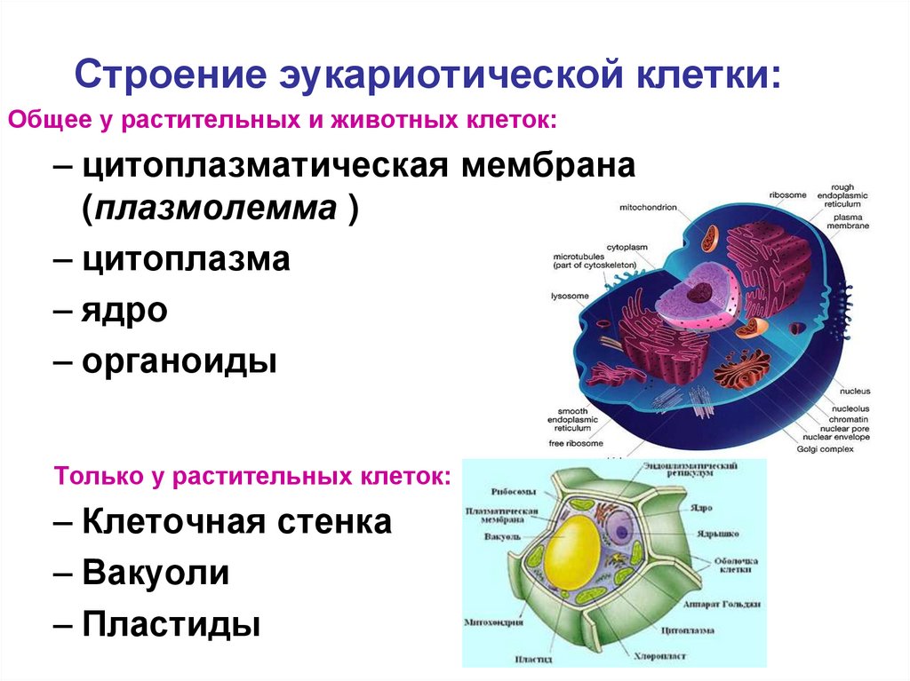 Строение эукариотической клетки:Общее у растительных и животных клеток: