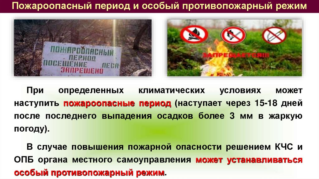 Пожароопасный период и особый противопожарный режимПри