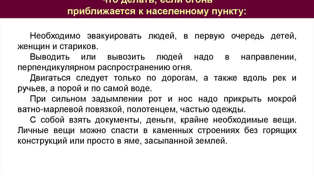 Что делать, если огоньприближается к населенному пункту: