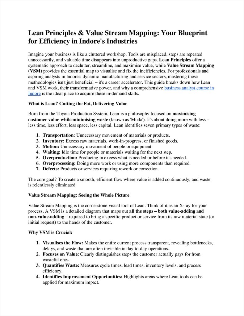 Lean Principles & Value Stream Mapping: Your Blueprintfor Efficiency in Indore's Industries