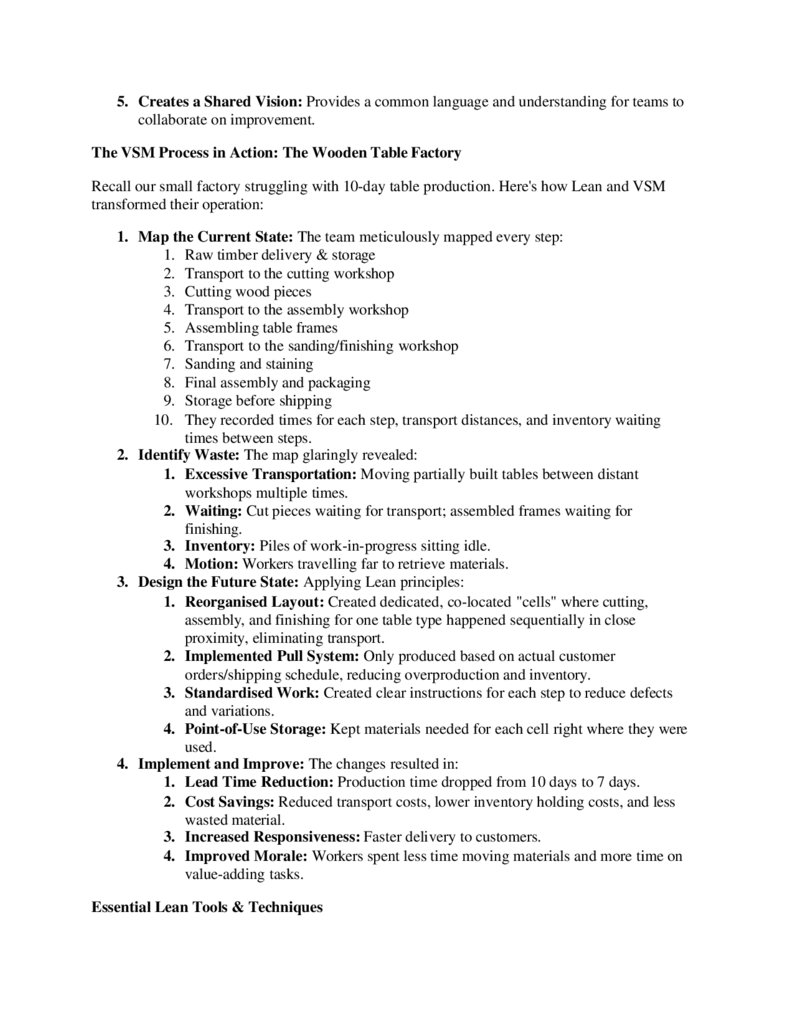 Beyond VSM, Lean practitioners use a robust toolkit:1. 5S (Sort, Set in Order, Shine, Standardise, Sustain): Organising the workplace for