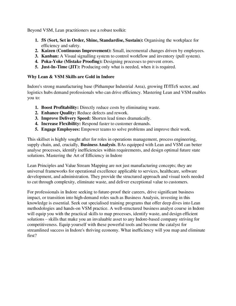 methodologies and hands-on VSM practice. A well-structured business analyst course in Indore
