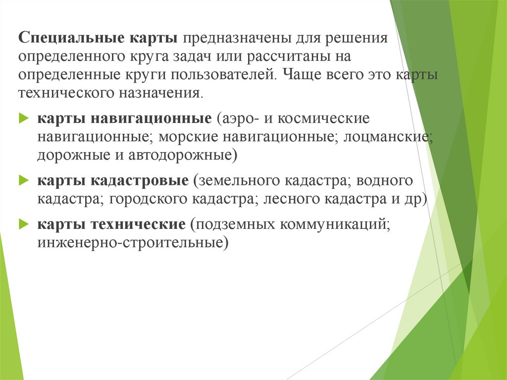 Специальные карты предназначены для решенияопределенного круга задач или рассчитаны на