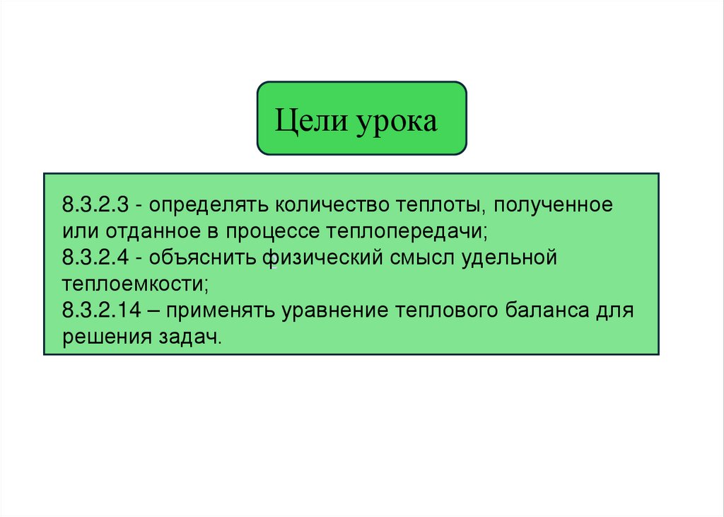 Цели урока8.3.2.3 - определять количество теплоты, полученное