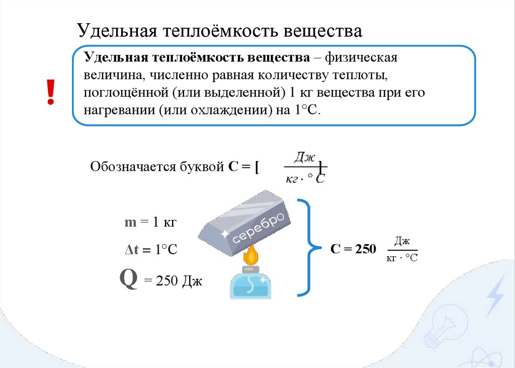 вещества на 1°С. Оказалось, что количество теплоты зависит