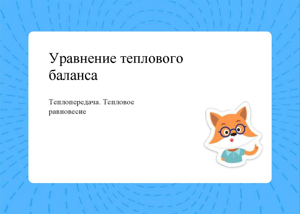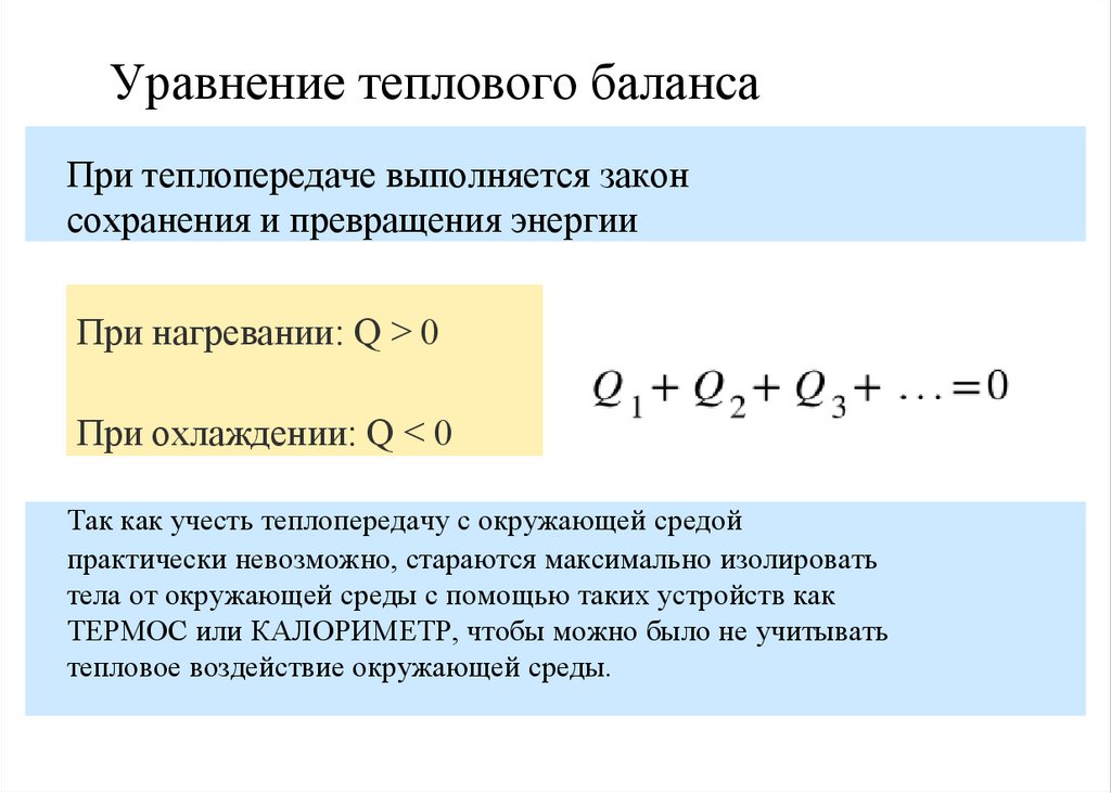 Уравнение теплового балансаПри теплопередаче выполняется закон