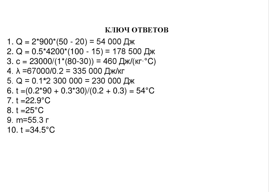 КЛЮЧ ОТВЕТОВ1. Q = 2*900*(50 - 20) = 54 000 Дж