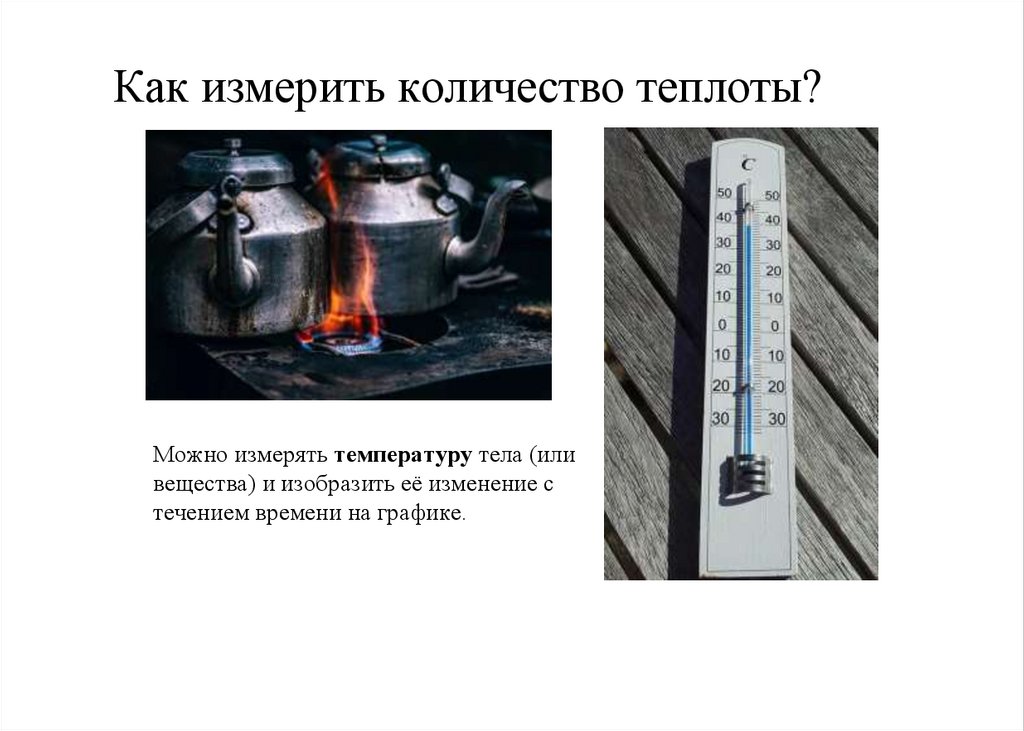 Как измерить количество теплоты?Можно измерять температуру тела (или
