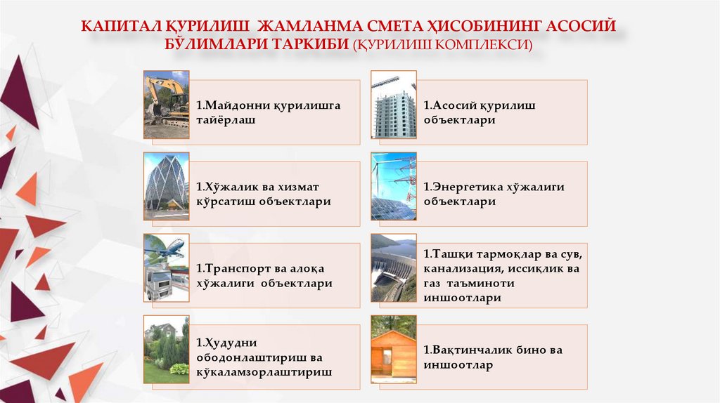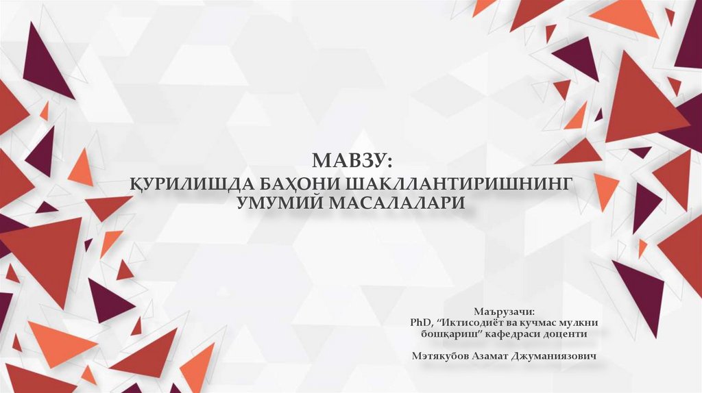 1. ҚУРИЛИШДА БАҲОНИ ШАКЛЛАНТИРИШНИНГ УМУМИЙ МАСАЛАЛАРИ