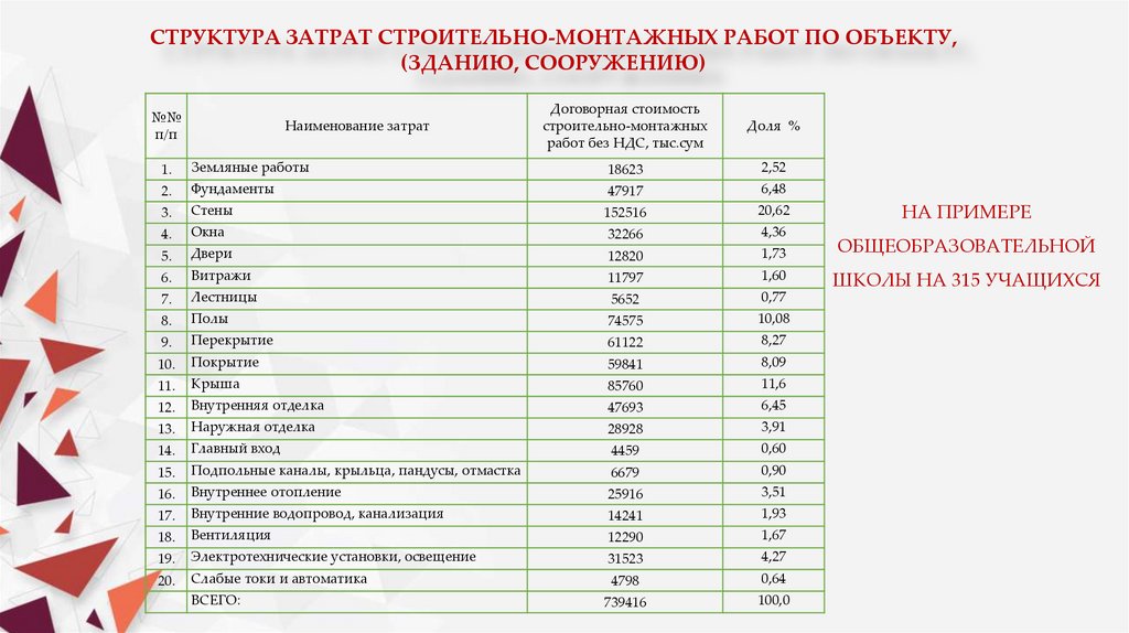 СТРУКТУРА ЗАТРАТ СТРОИТЕЛЬНО-МОНТАЖНЫХ РАБОТ ПО ОБЪЕКТУ,(ЗДАНИЮ, СООРУЖЕНИЮ)