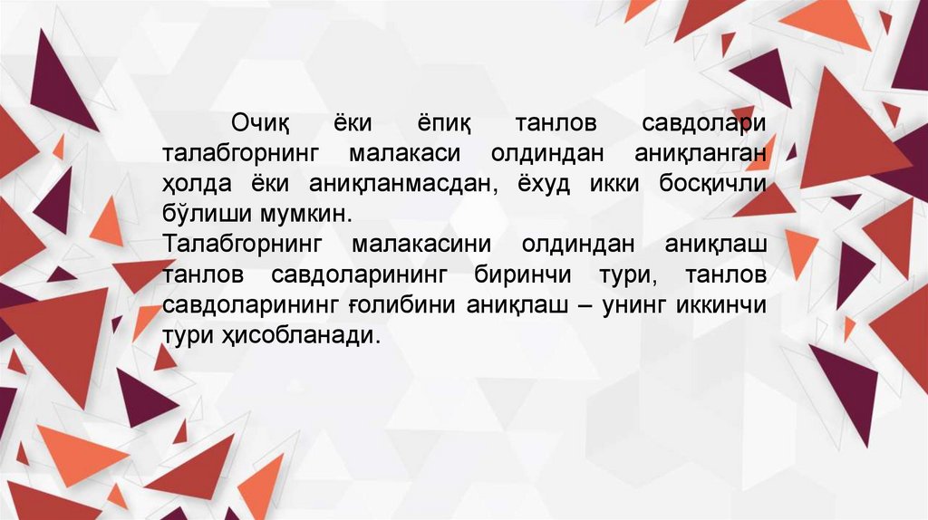 ҚУРИЛИШДА ТАНЛОВ САВДОЛАРИНИ ТАШКИЛ ЭТИШТанлов