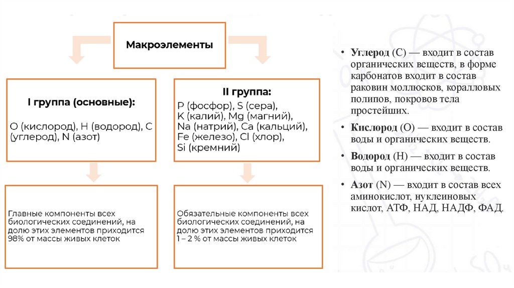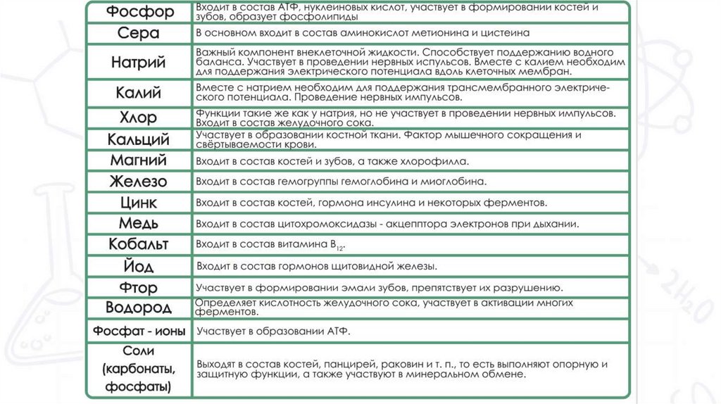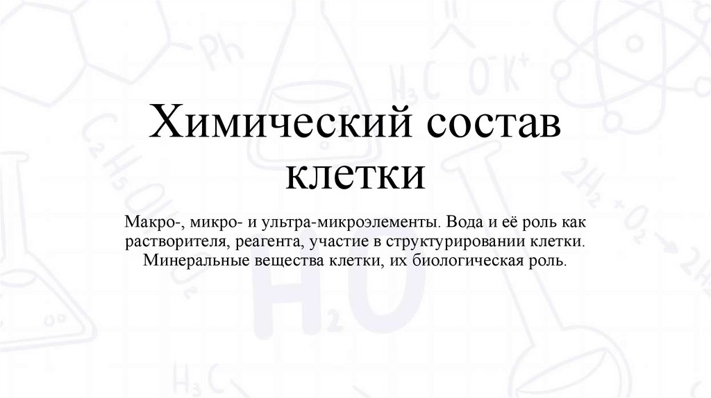 Макро-, микро- и ультра-микроэлементы. Вода и её роль какрастворителя, реагента, участие в структурировании клетки.