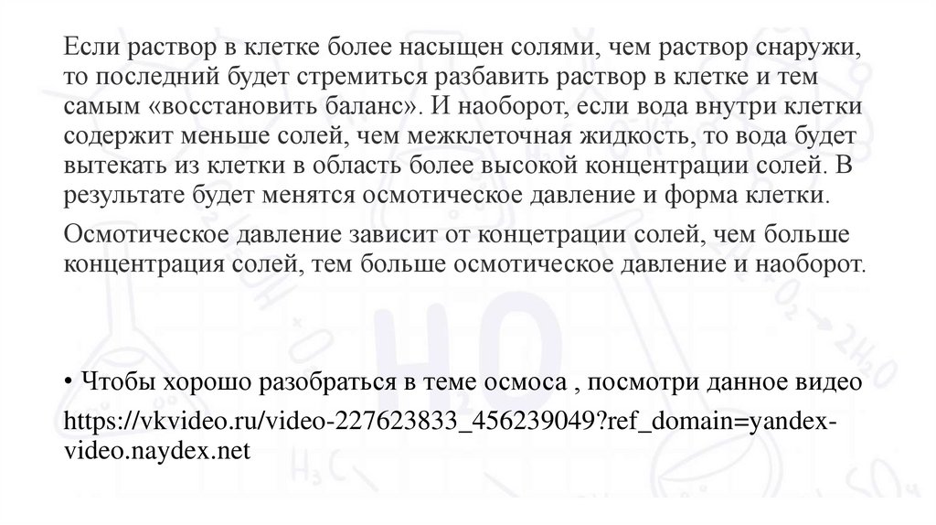 • Чтобы хорошо разобраться в теме осмоса , посмотри данное видео