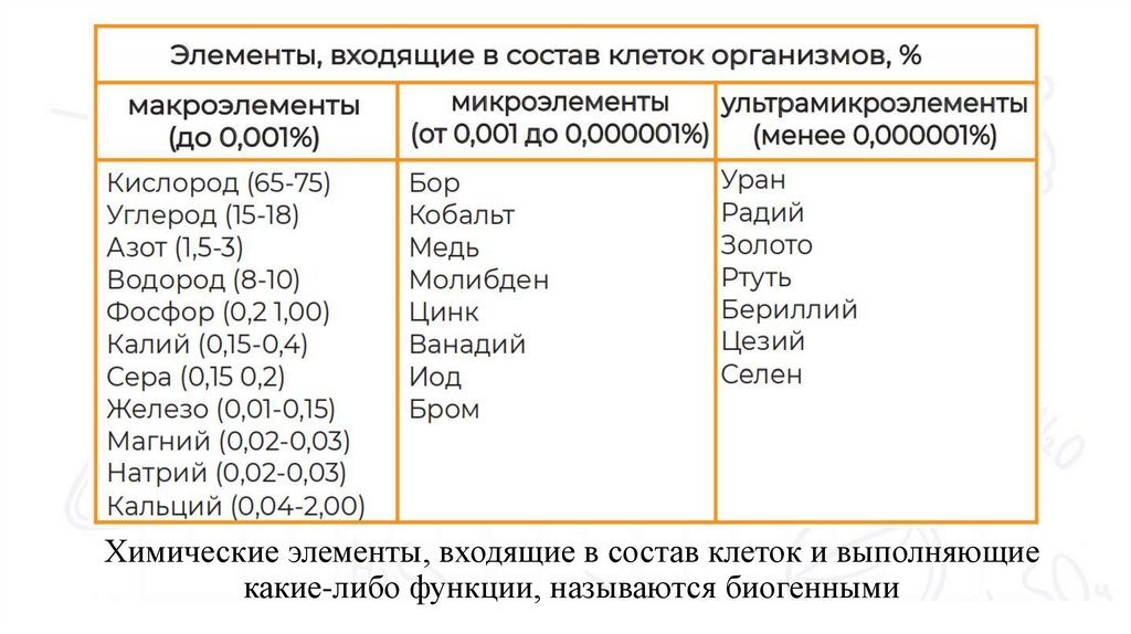 Химические элементы, входящие в состав клеток и выполняющиекакие-либо функции, называются биогенными