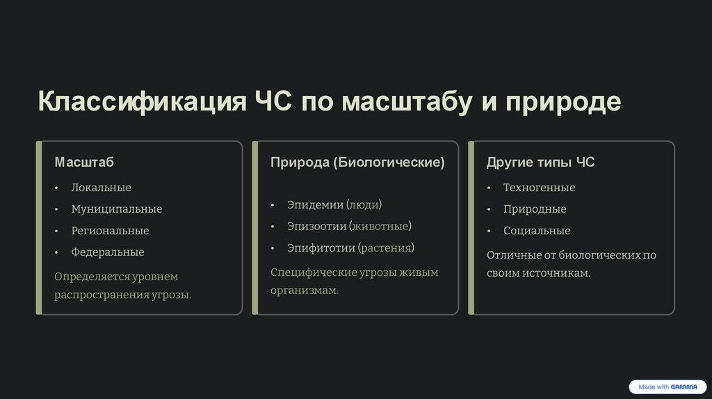 Классификация ЧС по масштабу и природеМасштаб