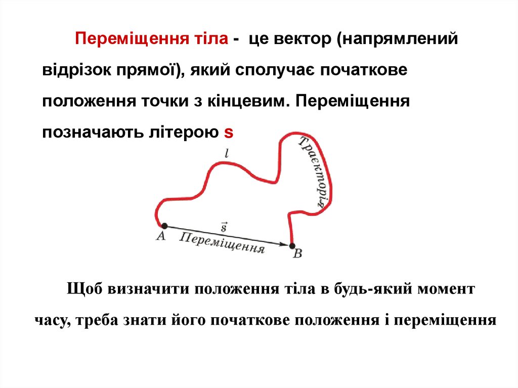 Переміщення тіла - це вектор (напрямленийвідрізок прямої), який сполучає початкове