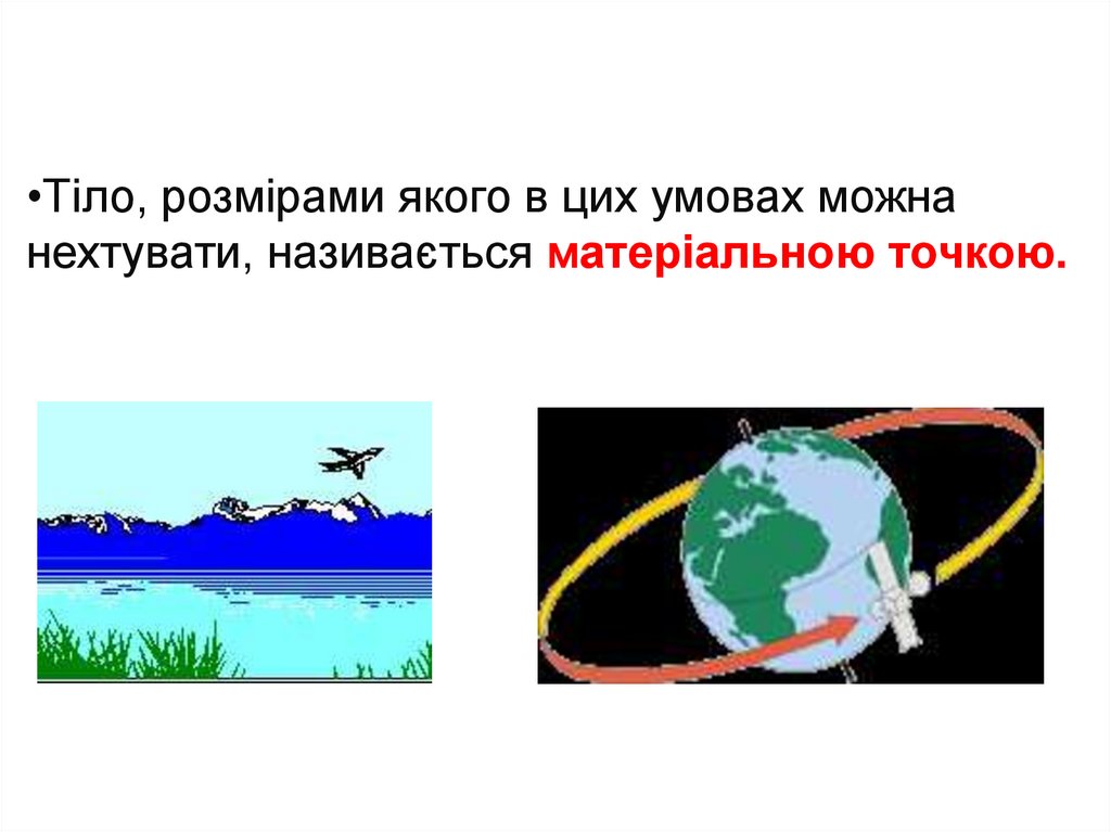 •Тіло, розмірами якого в цих умовах можнанехтувати, називається матеріальною точкою.