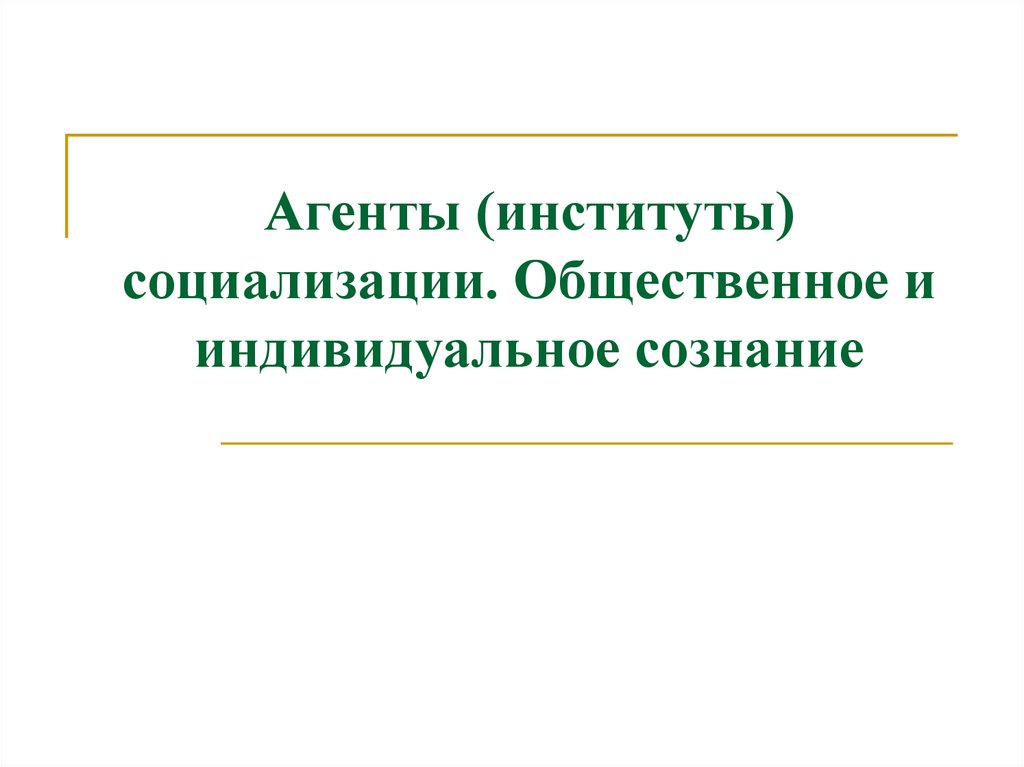 Агенты (институты) социализации. Общественное и индивидуальное сознание