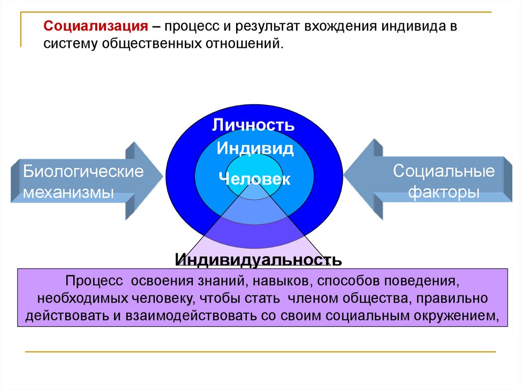 Социализация – процесс и результат вхождения индивида всистему общественных отношений.