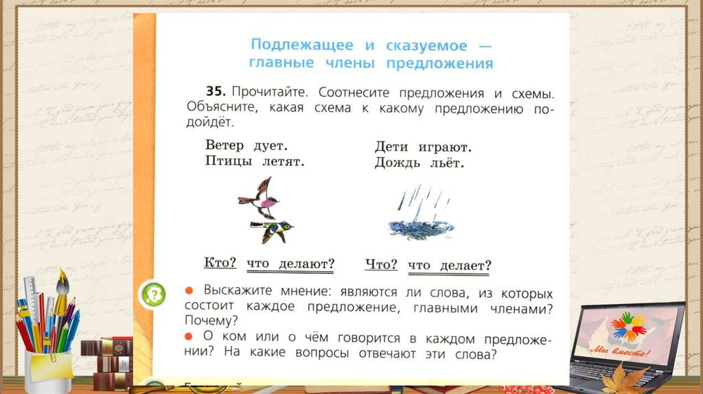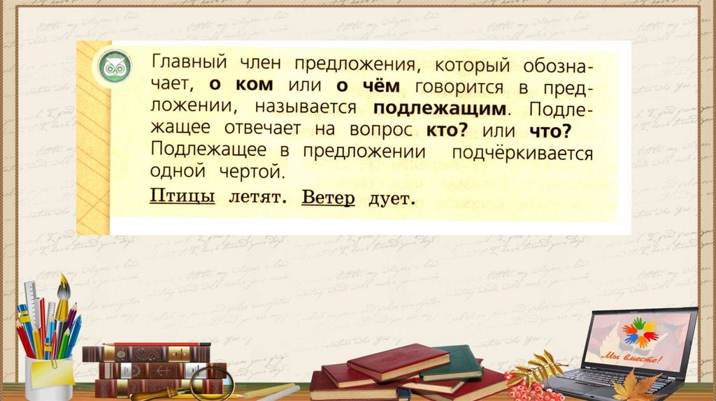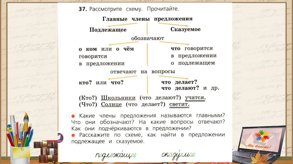 Подлежащее и сказуемое. Главные члены предложения