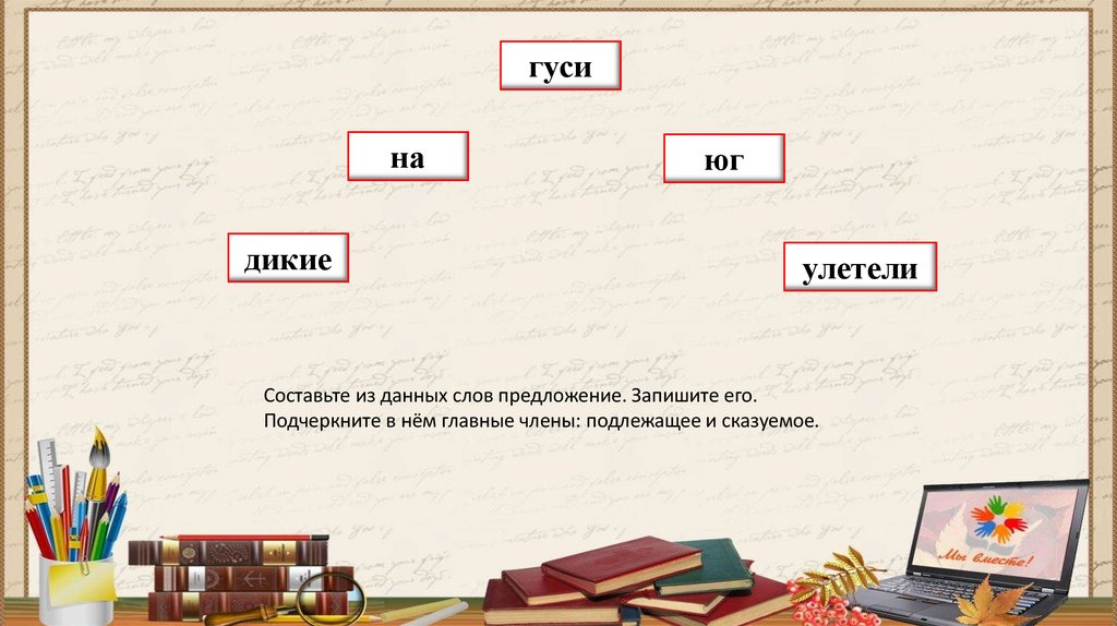 Составьте из данных слов предложение. Запишите его.