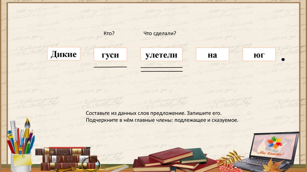 Подчеркните в нём главные члены: подлежащее и сказуемое.