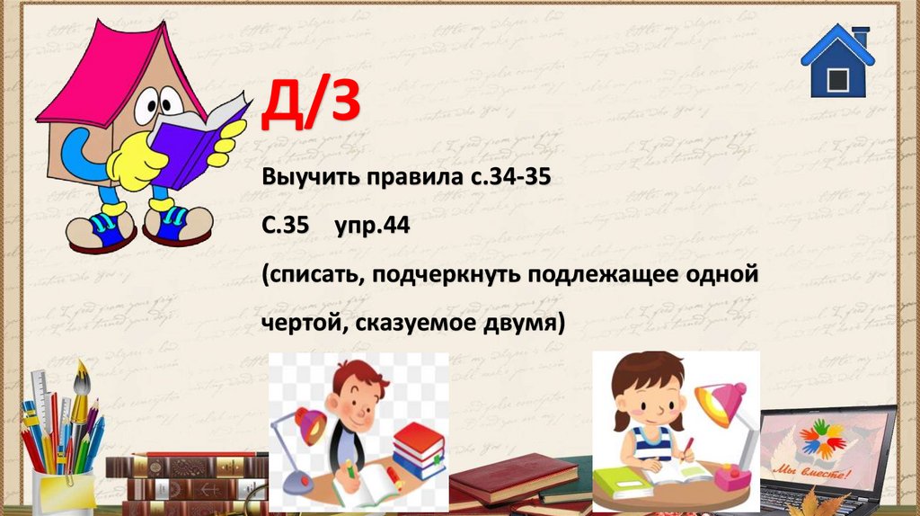 Д/ЗВыучить правила с.34-35