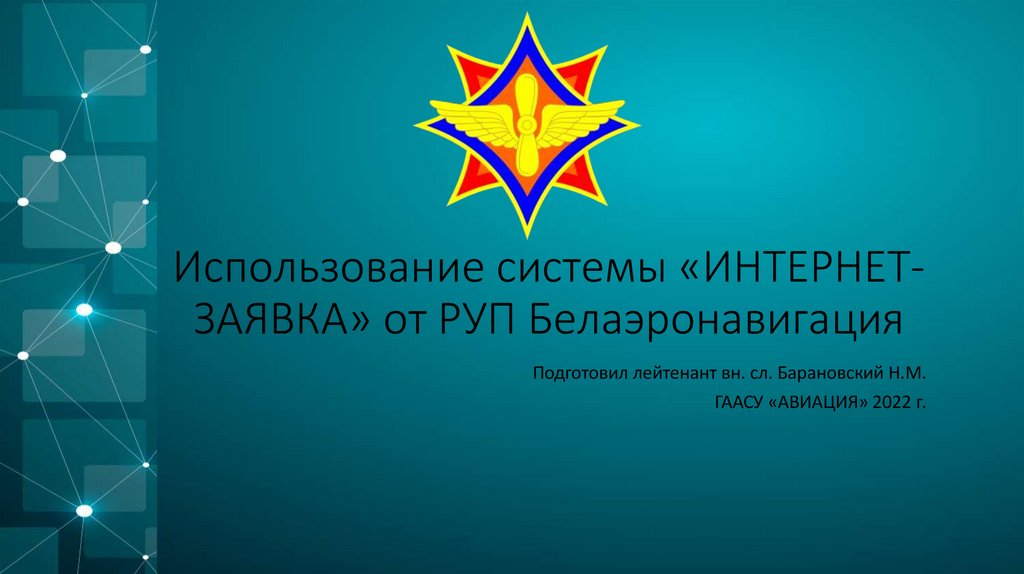 Использование системы «ИНТЕРНЕТЗАЯВКА» от РУП БелаэронавигацияПодготовил лейтенант вн. сл. Барановский Н.М.