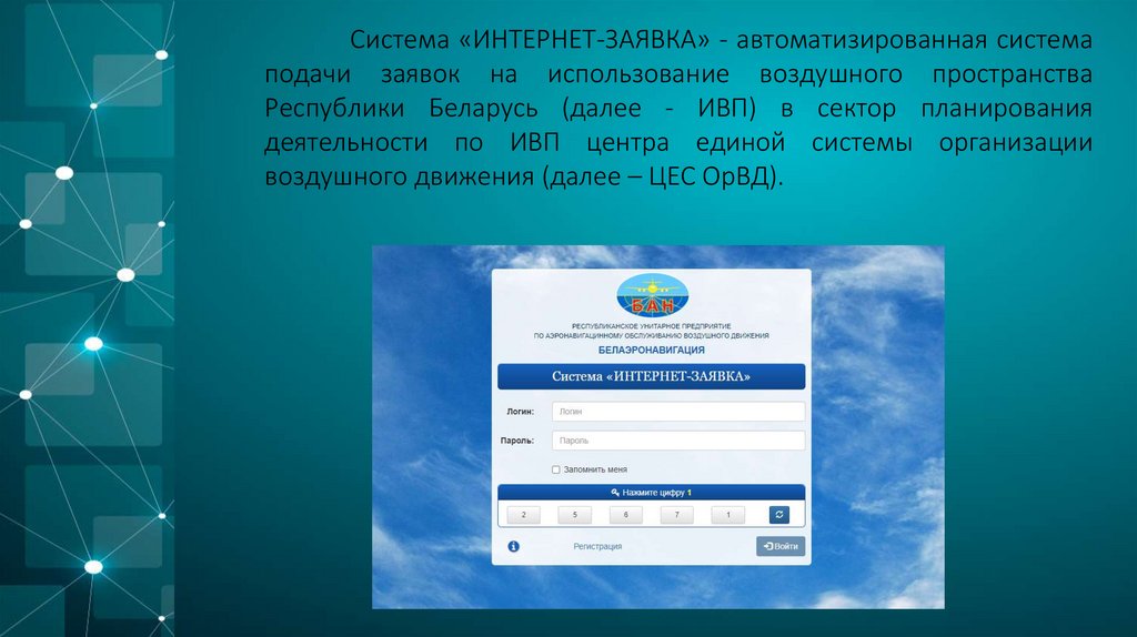 Система «ИНТЕРНЕТ-ЗАЯВКА» - автоматизированная системаподачи заявок на использование воздушного пространства