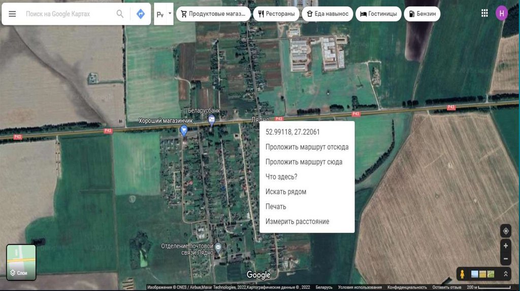 Исходное значение из гугл-карт: 52.9911 27.2206