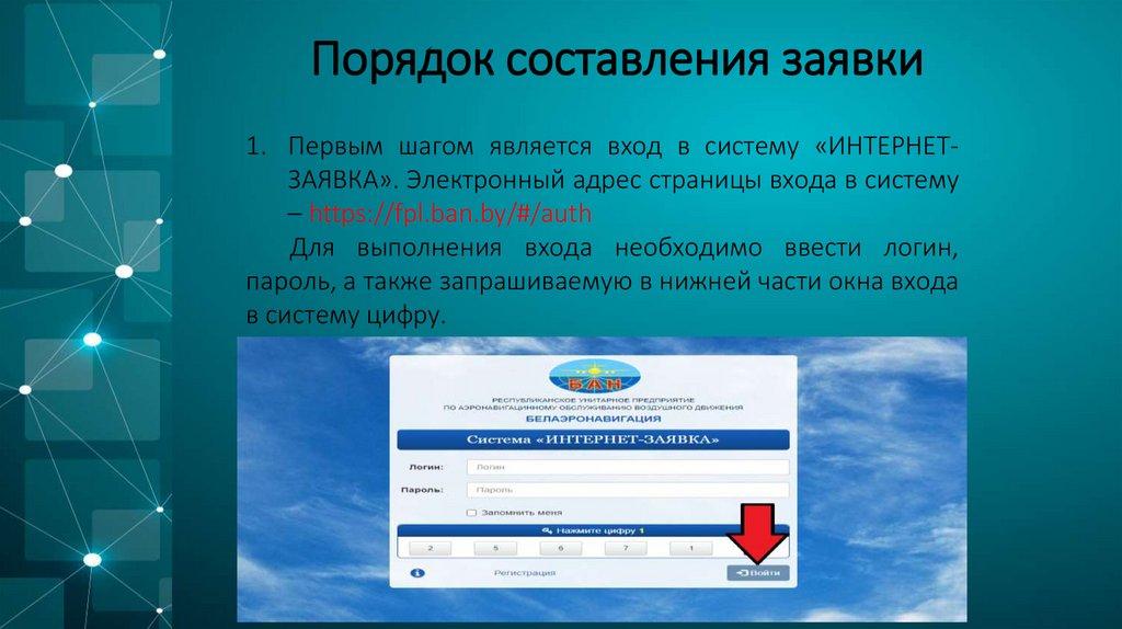 Порядок составления заявки1. Первым шагом является вход в систему «ИНТЕРНЕТЗАЯВКА». Электронный адрес страницы входа в систему