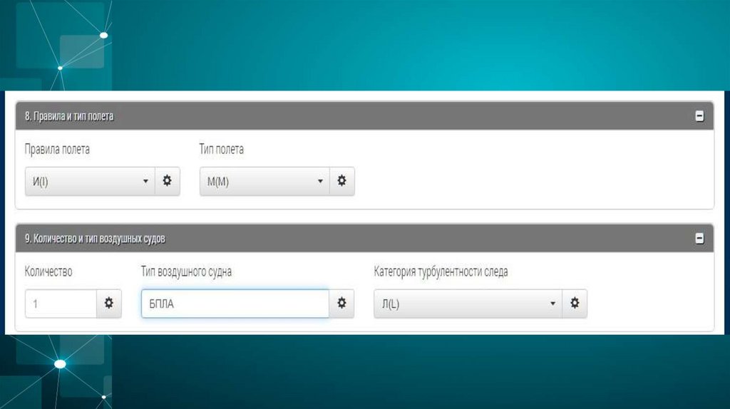 4. Далее необходимо заполнить поле № 8 – правила и тип полета.В окне «правила полета» из выпадающего списка выбирается