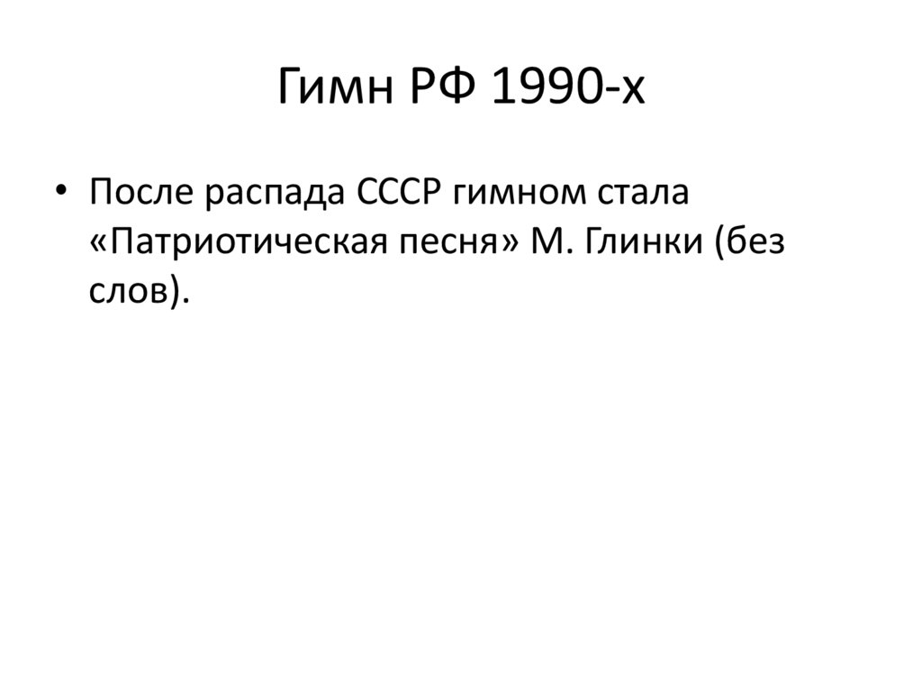 Гимн РФ 1990-х• После распада СССР гимном стала