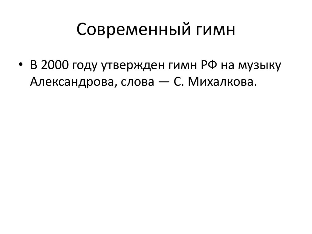 Современный гимн• В 2000 году утвержден гимн РФ на музыку
