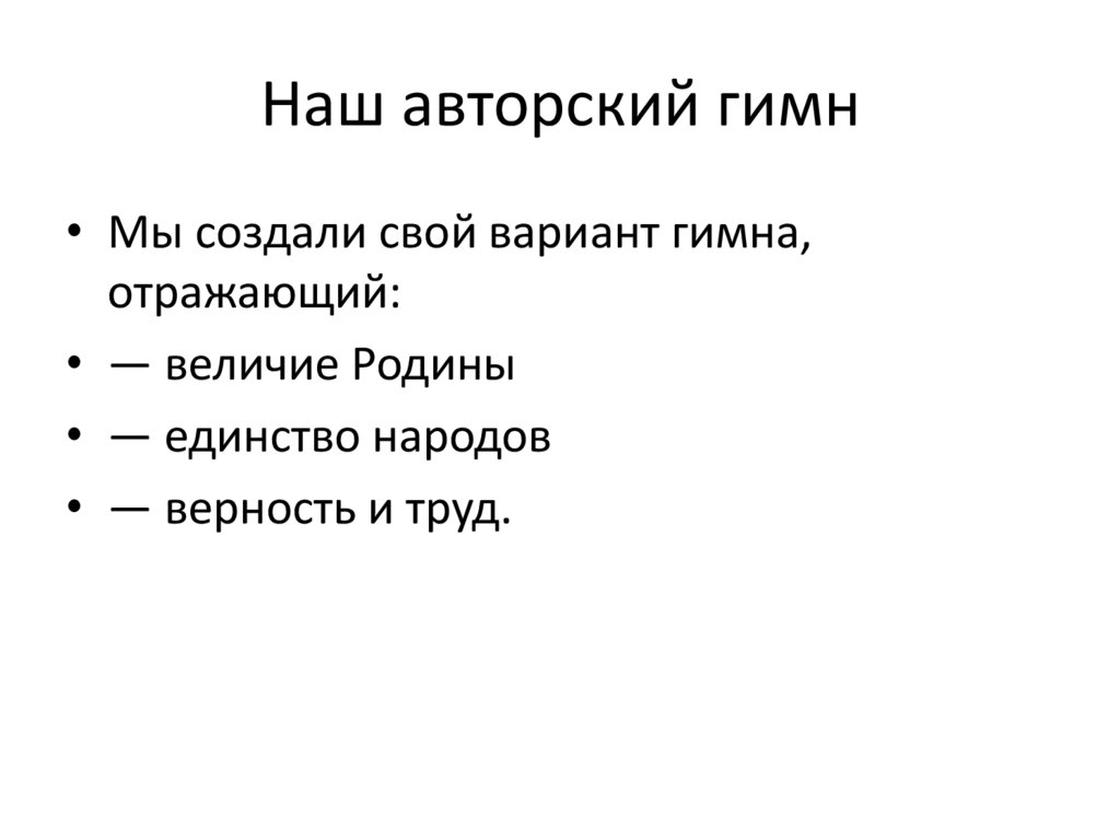Наш авторский гимн• Мы создали свой вариант гимна,
