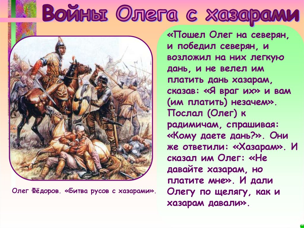 Олег Фёдоров. «Битва русов с хазарами».«Пошел Олег на северян,